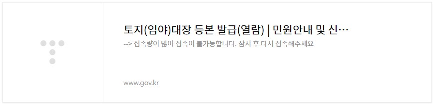 - 서비스 검색: 상단 검색창에 "토지대장 발급"을 입력하고 검색합니다.