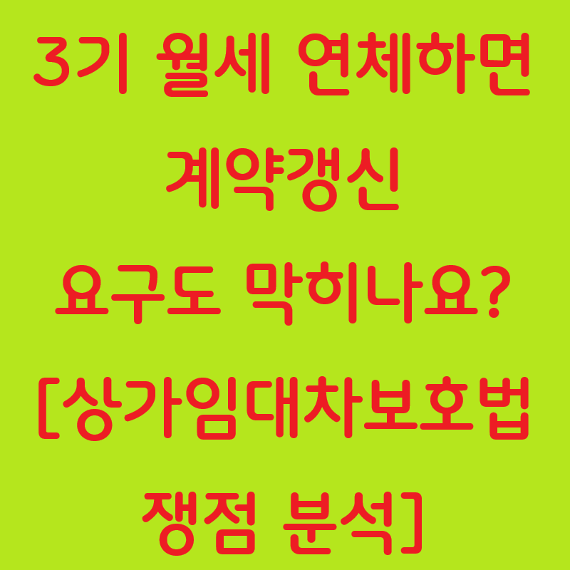 - 상가임대차보호법 제10조 제1항 제1호에 따라 3기 차임 연체는 계약갱신 요구 거절 사유가 됩니다.